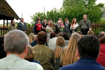Otwarcie wystawy - wernisaż w Chlewogalerii to wielkie święto. W Budzie Ruskiej na końcu świata pojawia się nagle grubo ponad setka osób. Wśród miłośników fotografii są też ci ze świata sztuki przez wielkie S, telewizji, a nawet z pierwszych stron gazet i polityki. Politykom też potrzeba trochę piękna, bo co innego może ich w aniołów przemienić? |